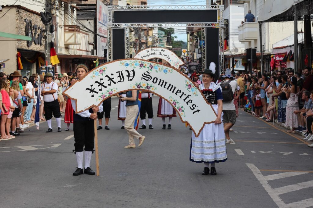 Na tarde de ontem (1º), o desfile cultural da Sommerfest, evento tradicional que celebra a cultura germânica em Domingos Martins, reuniu o público com danças, músicas e simbolismos que rememoraram a história e as tradições dos imigrantes alemães que colonizaram a região. O evento, realizado anualmente, é um dos principais destaques do calendário cultural da cidade e atrai turistas de diversas partes do Espírito Santo e de outros estados.