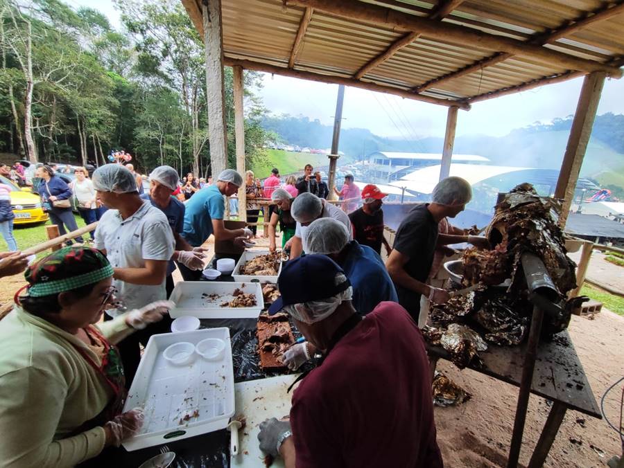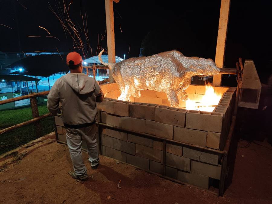 Um dos momentos mais esperados do evento acontece às 15h30, com a distribuição gratuita do boi no rolete. Segundo a organização, o preparo da carne começa ainda na madrugada de sábado para domingo. O boi é salgado, envolto em papel-alumínio e assado lentamente por cerca de 15 horas até atingir o ponto ideal. A carne é então cortada e servida ao público presente.