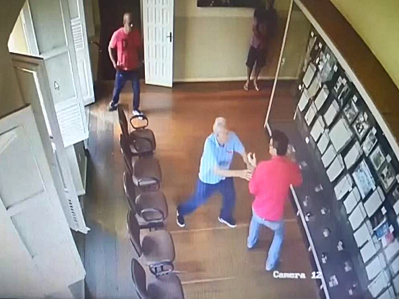 As câmeras de segurança da recepção da prefeitura registraram o momento em que Nilton aborda Edélio Guedes e faz um questionamento. O repórter está com o celular na mão, filmando o prefeito. Em seguida, Edélio parte para cima do jornalista e empurra-o.