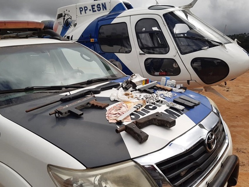 Ainda segundo a polícia, em meio a uma mata foram encontradas duas barracas montadas, onde havia dois indivíduos, um com uma submetralhadora e outro com uma pistola. Um dos suspeitos tentou contra a guarnição e fugiu em meio a vegetação. O helicóptero da Polícia Militar foi acionado e prosseguiu até o local com um cão rastreador. O celular do suspeito foragiu foi encontrado, e as buscas continuam.