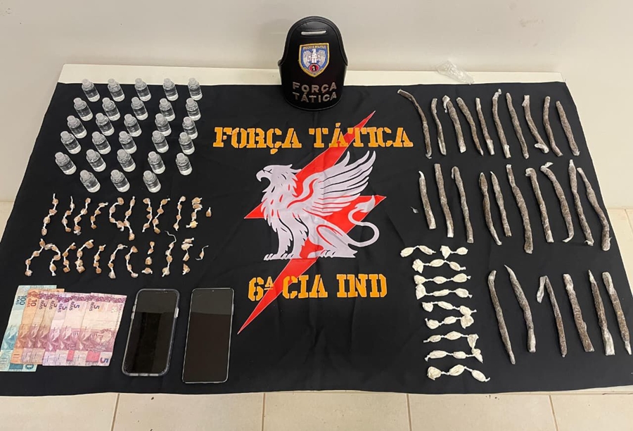 A primeira situação aconteceu à noite, após denúncias de tráfico de drogas nas proximidades de um estabelecimento comercial. Durante buscas no local, entorpecentes foram encontrados em uma residência.