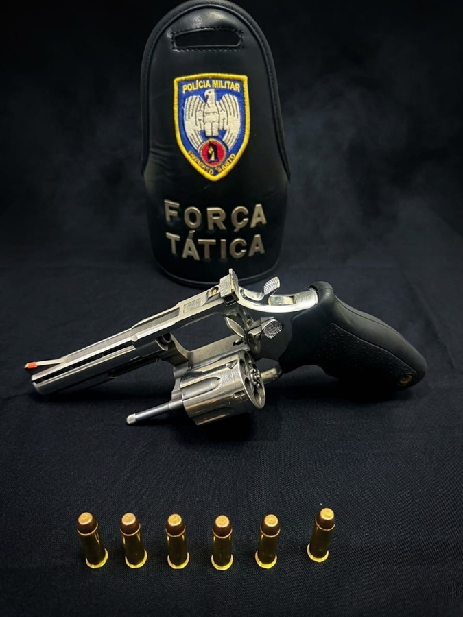 Durante a abordagem, um dos ocupantes informou que havia escondido a arma. Um revólver calibre 38, carregado com seis munições intactas, foi encontrado, e o suspeito foi levado para a delegacia junto com o armamento.