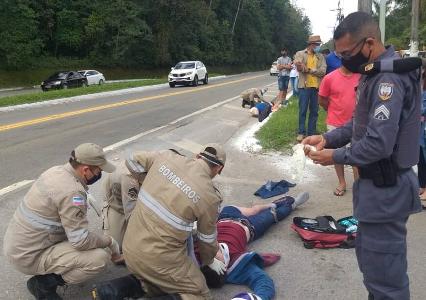 Além do condutor da motocicleta, que sofreu fratura visível no fêmur, viajava também na moto uma senhora que se feriu em um braço e sofreu escoriações generalizadas pelo corpo ao cair após a colisão da moto com o automóvel Siena. A ocorrência foi registrada pela Polícia Rodoviária Federal (PRF).