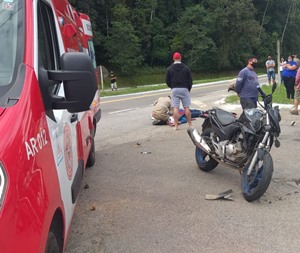 Um acidente ocorrido no início da tarde deste sábado (03) provocou fraturas expostas em um homem que conduzia uma motocicleta Honda, modelo CB 300. A moto foi atingida por um carro Siena, no quilômetro 48, da Rodovia BR-262, em Barra de Rio Fundo, em Marechal Floriano. A ocorrência foi semelhante à da tarde da última sexta-feira.