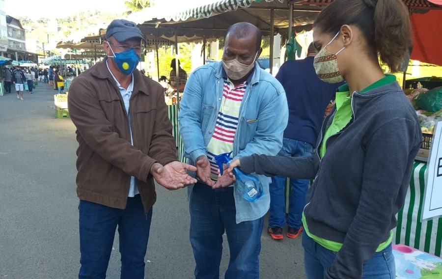Centenas de moradores de Marechal Floriano e visitantes que frequentam a Feira da Roça aos sábados, como hoje (05) entraram no local somente com o uso do álcool nas mãos. Na entrada é exigido o uso da máscara facial. As atitudes são consideradas como ‘cidadãs’ por um médico que sempre frequenta o local para realizar compras de verduras e frutas.