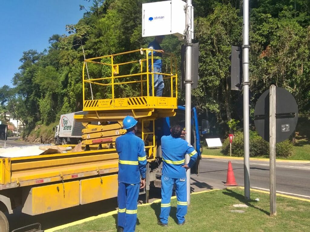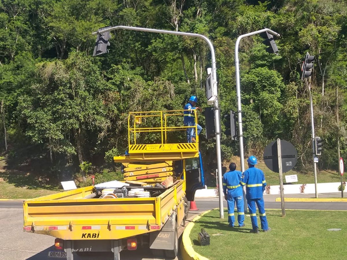 Equipe reconstrói semáforo destruído por acidente na BR-262