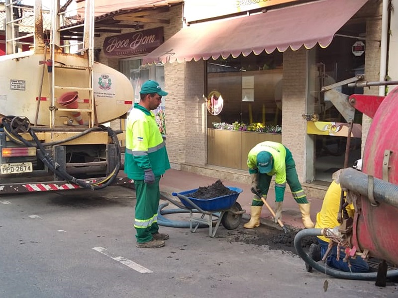 Duas entradas de águas procedentes de chuvas fortes e médias foram desentupidas. Foram retirados dos dois locais pelo menos dez carrinhos de mão com lama escurecida e fétida, que impediam a passagem normal das águas das chuvas nos bueiros. O material que entope é procedente principalmente dos pneus de veículos que trafegam em estradas vicinais e passam pelo centro da cidade.