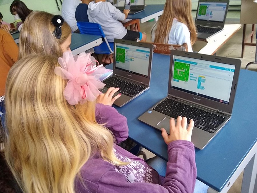 Outra frente adotada pelo professor foi a utilização do ‘Google Sala de Aula’, por meio dos Chromebooks. Com o equipamento, os estudantes trabalharam com o site code.org e puderam desenvolver conhecimento sobre programação de computadores.