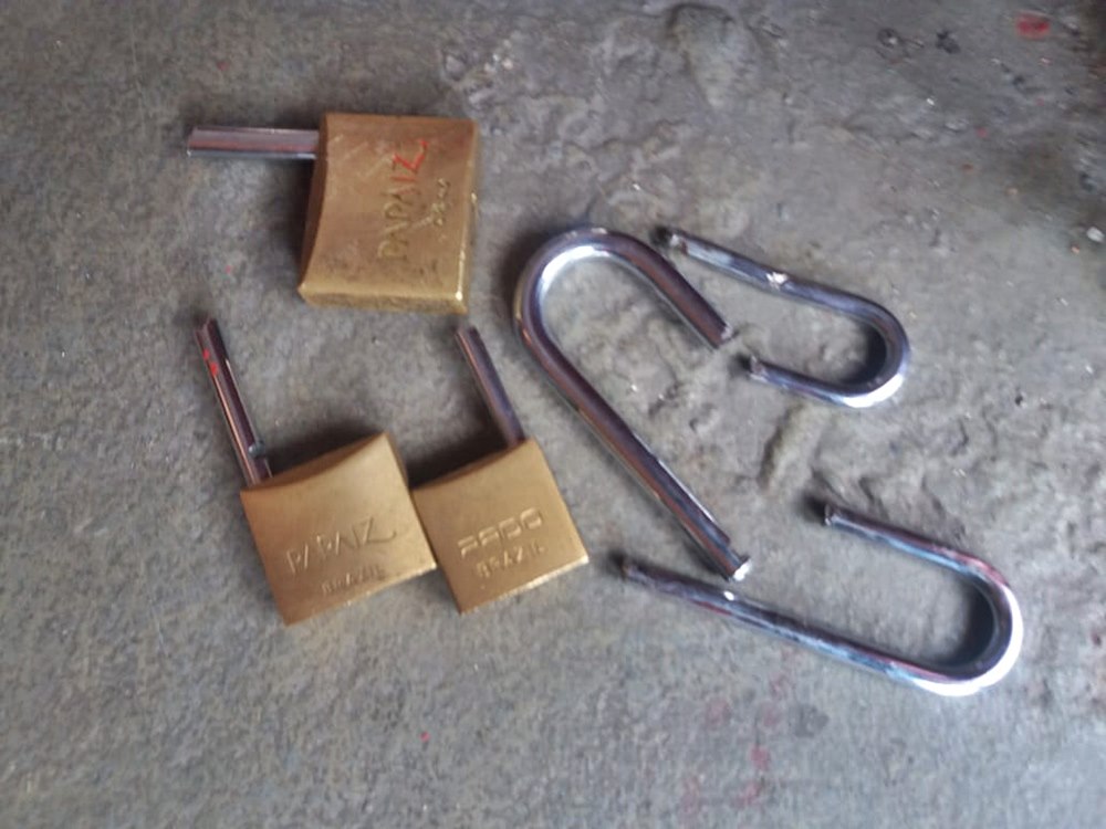Uma pessoa suspeita do furto, constituído de um aparelho celular, 500 reais, maços de cigarros, doces e chocolates diversos, foi visto por volta das 4 horas desta quinta-feira (10), passando pelo local com uma sacola nas mãos. Já houve o contato com os agentes da PM. As partes dos cadeados arrombados ficaram jogadas no piso do estabelecimento.