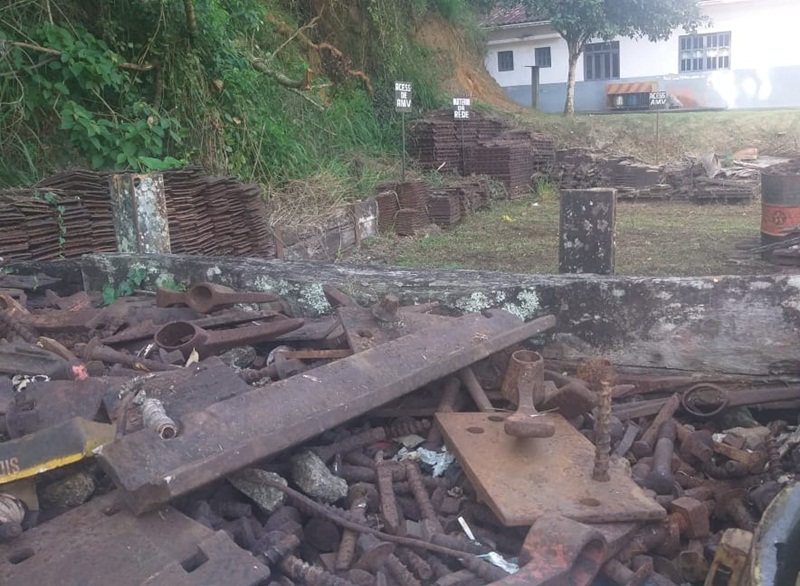 A falta de uma escavadeira acabou transferindo a data da remoção das peças metálicas depositadas ao lado da antiga linha férrea, próximas a um imóvel da antiga Leopoldina. Com isso, a carreta que transportaria as ferragens de linha ontem (21), retornou vazia a Minas Gerais para onde seriam transportados os materiais.