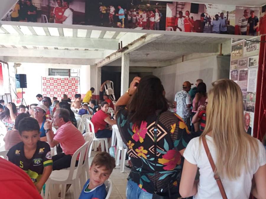 No piso do pequeno prédio onde há um bar e serviço de restaurante improvisado, também se encontra totalmente abarrotado de pessoas solicitando o delicioso prato que agradou a todos que o experimentaram. “Vê uma comidinha gostosa para mim”, disse o ex-jogador do América, Ernani, que sempre comparece aos encontros festivos promovidos pelo time.