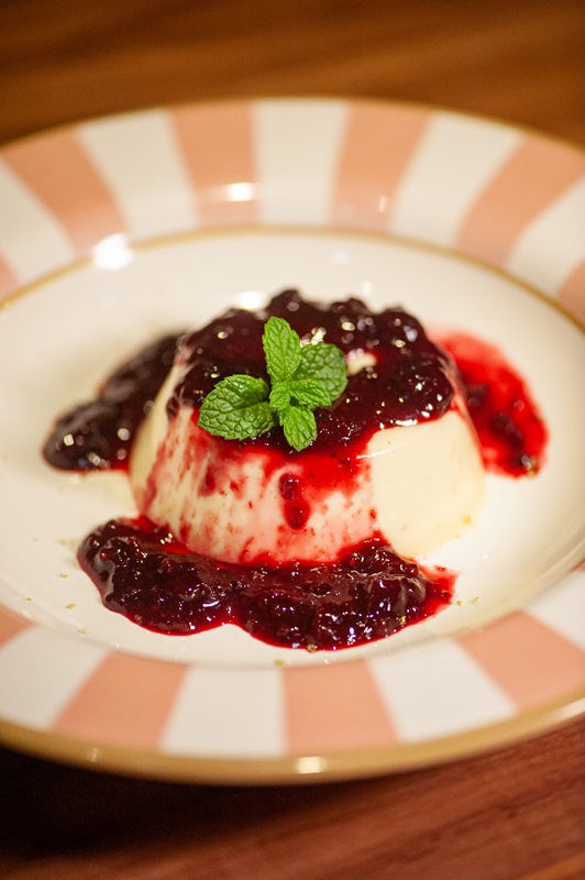 - Panacota de limão siciliano com geleia de amora: Uma refrescante panacota de limão siciliano com com deliciosa geleia de amora