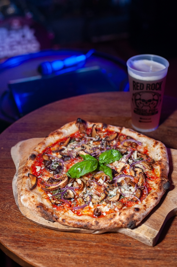 - Pizza napolitana, com molho de tomate San marzano, queijo fior de latte, cogumelo shitake, cebola roxa, grana padano e azeite italiano.