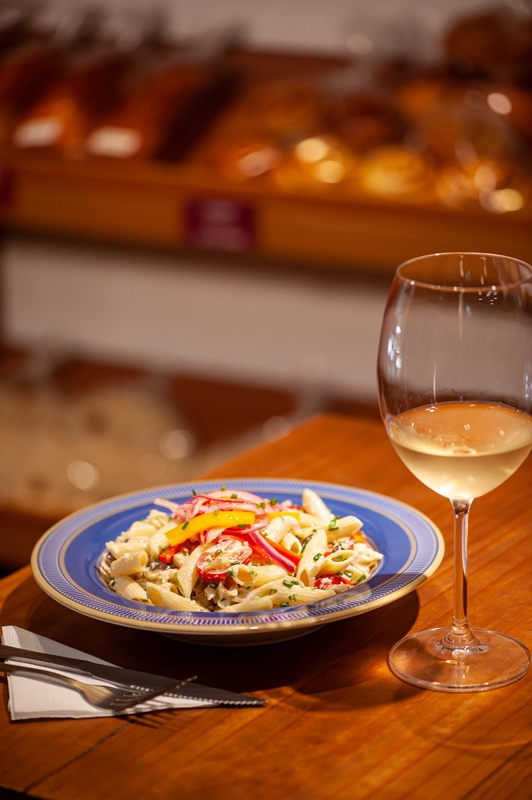 - Bacalà Forneria:Bacalhau cremoso com penne rigate, azeitona preta, tomate cereja e picles de pimentão vermelho, amarelo e cebola roxa. Servido gelado – Individual Valor: R$65,00