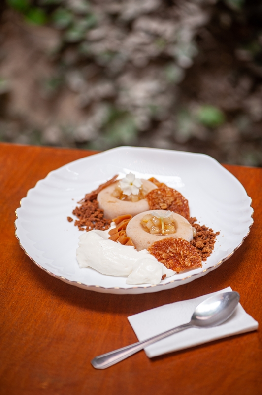 - Gelatto da mata: Gelato artesanal de cumaru, ganache de chocolate meio amargo e crumble de nozes tostadas. Cremosidade aromática, intensidade do chocolate e crocância delicada em perfeita harmonia.