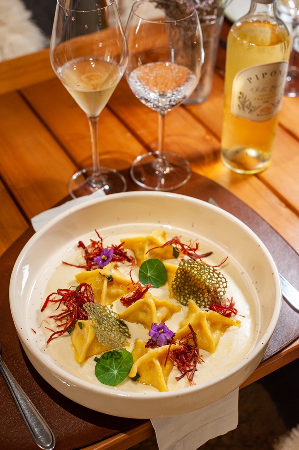 - Fagottinni artesanal recheado de abóbora com parmesão sobre fonduta de queijo e crispy de carne seca Valor: R$117,00 – Individual