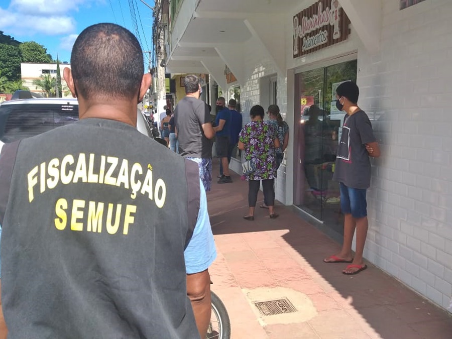 Fiscalização da Prefeitura de Marechal Floriano para distanciar as filas