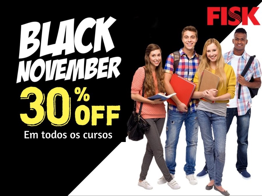 Realizada no próximo dia 23 de novembro, a Black Friday começará mais cedo nas unidades do Fisk de Domingos Martins e Marechal Floriano. A partir do próximo sábado (10) e prosseguindo até o dia 30 de novembro, as duas escolas estarão com a promoção Black November, que ofertará 30% de desconto para todas as faixas etárias, nos cursos de Inglês, Espanhol e Informática.