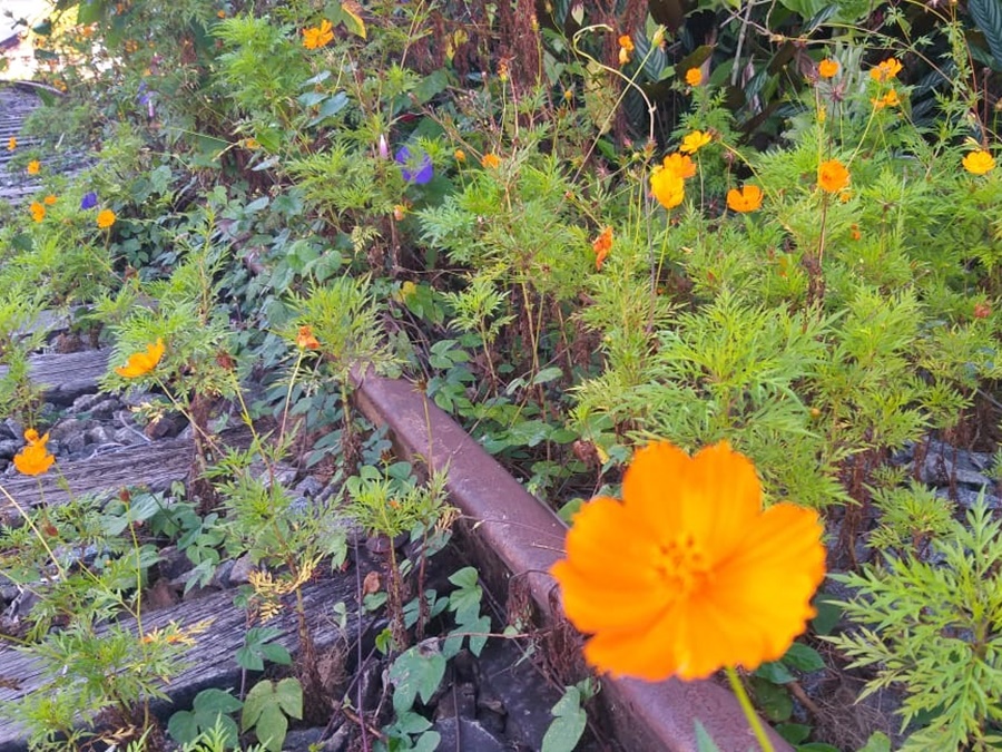 Flores coloridas embelezam linha férrea abandonada em Marechal Floriano