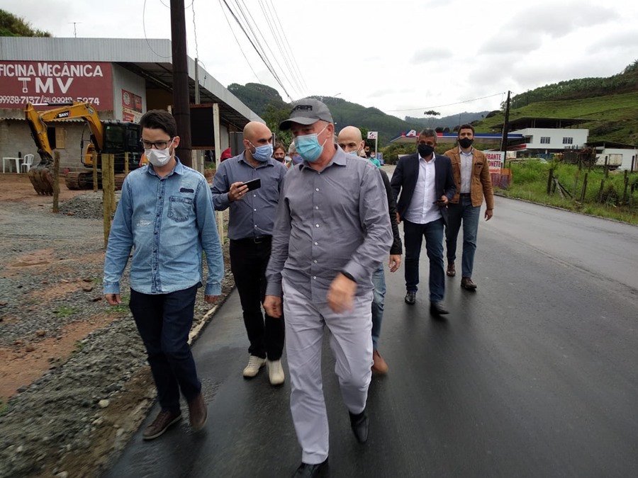 A primeira obra visitada foi a de recuperação do trecho da ES-164, entre o distrito de Castelinho e Vargem Alta, que é uma das principais vias de acesso à região turística de Pedra Azul e de escoamento da produção de pequenos produtores da Região Serrana.