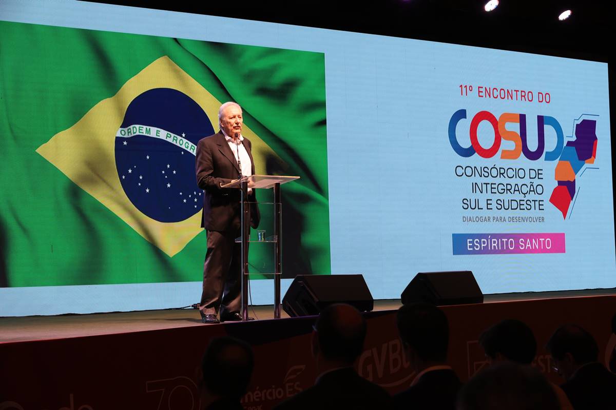 Em sua fala, o governador anfitrião destacou que esta nova edição do Consórcio é uma oportunidade de apresentar as potencialidades do Espírito Santo e a região turística de Pedra Azul. Segundo ele, o Cosud busca o fortalecimento das instituições públicas e, assim, da democracia, com relações institucionais que se baseiam no diálogo. Os sete estados integrantes do Cosud representam 70% do Produto Interno Bruto (PIB) nacional.