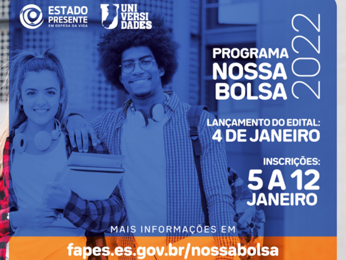 O novo ano começou com boas notícias para quem sonha em fazer a graduação. O Governo do Estado, por meio da Fundação de Amparo à Pesquisa e Inovação do Espírito Santo (Fapes), lançou, nesta terça-feira (04), o edital do Programa Nossa Bolsa 2022, com 1.309 bolsas integrais para graduação. O edital é uma parceria da Fundação com a Secretaria da Educação (Sedu) e investe mais de R$ 68 milhões.