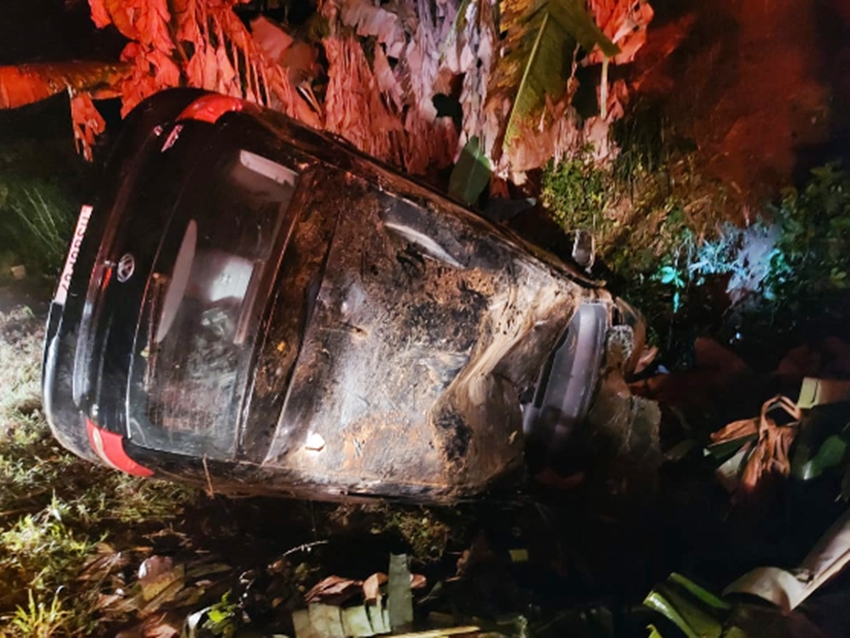 Homem fica preso às ferragens após cair com carro em ribanceira