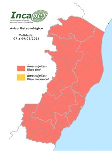 O Instituto Capixaba de Pesquisa, Assistência Técnica e Extensão Rural (Incaper) divulgou um alerta de atenção de condições favoráveis para ocorrência de pancadas moderadas a fortes de chuva, com trovoadas, para todas as regiões do Espírito Santo.