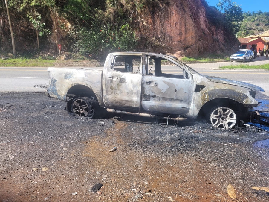 Incêndio destrói caminhonete em Pedra Azul