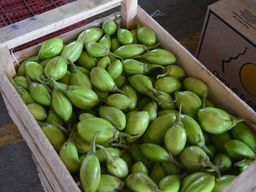 É possível encontrar as variedades de jiló redondo e jiló comprido, ambos variando no valor de R$1,37 a R$1,43, o quilo. A caixa com 12 kg está sendo ofertada a R$15,00 reais.