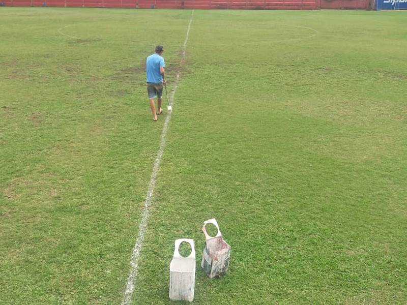 O gramado foi preparado no dia de ontem (23) com o corte na totalidade realizado por uma equipe de trabalhadores locais e a marcação do campo foi realizada após o meio dia de hoje (24). Hoje após o horário do almoço, o diretor de patrimônio Luiz Otávio Klippel, fez a marcação do gramado usando produtos especiais.