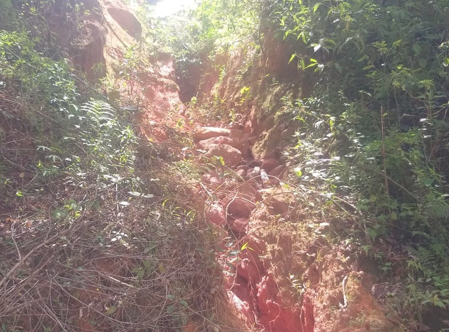 Lamaçal com pedras rola de morro para a margem da BR-262