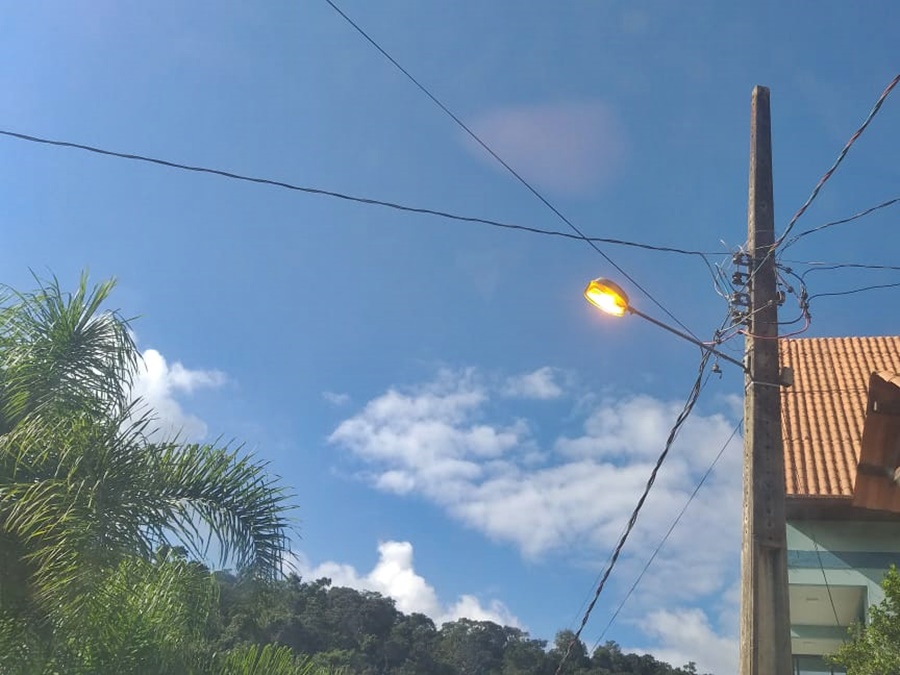 Na via de chegada à Igreja de Confissão Luterana, no alto de uma rua no Bairro Santa Rita, uma lâmpada está acesa durante todo o dia há algum tempo, desperdiçando energia elétrica.