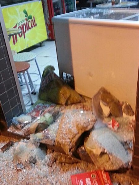 Utilizando uma enorme pedra, os vândalos quebraram a porta da lanchonete e levaram sacolas de salgado e até o caixa. Sorte do proprietário que já havia feito o caixa e fechado o estabelecimento mais cedo, assim como fizeram outros comerciantes. Seguindo o proprietário, ele conseguiu localizar o caixa, em uma rua próxima de seu estabelecimento. Não houve grandes prejuízos.