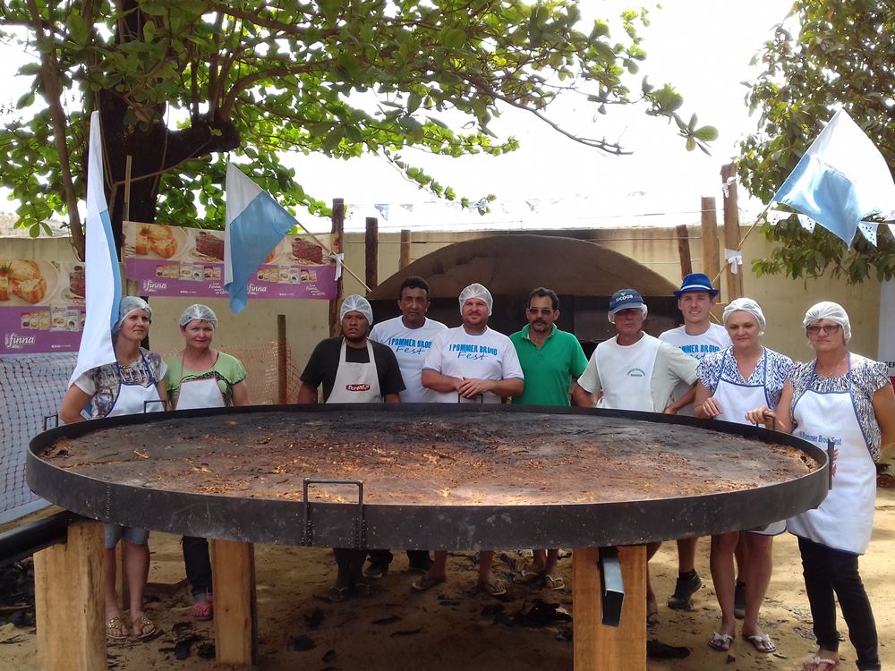 O brote, uma das iguarias mais tradicionais da culinária alemã foi confeccionado artesanalmente por voluntários, que literalmente colocaram a mão na massa. Tudo possível, graças ao item fundamental construído por Kleisler Ferreira. Trata-se da “forma” de ferro, de nove metros de diâmetro. Tudo feito, o brote pesando 300 quilos ficou no “ponto”.