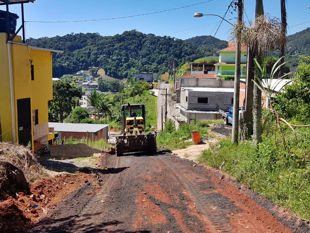 Praticamente destruída nos temporais nos meses anteriores, a Rua Cecília Pitanga recebeu na manhã desta terça-feira (07) uma equipe da Secretaria Municipal de Interior e Transportes para realizar uma reforma completa no piso da via com acréscimo de massa com pedras.