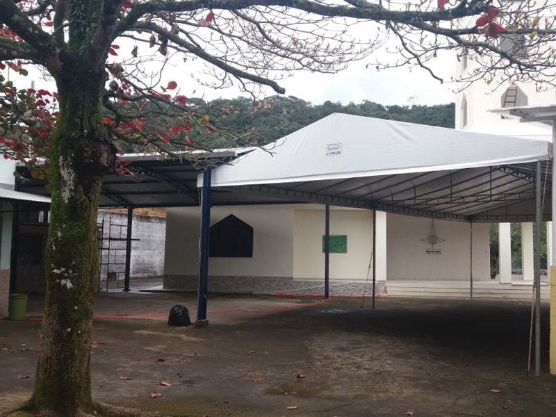 Já está concluída a montagem de um toldo com aproximadamente 200 metros quadrados, onde será servido o almoço durante a Festa da Colheita, promovida pela Comunidade Luterana de Marechal Floriano. A cobertura gigantesca servirá aos luteranos e convidados para o almoço neste domingo (05).