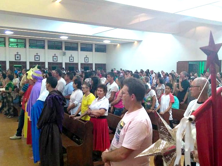 O pároco explica que, conforme a tradição católica, as pessoas vão de casa em casa comunicando verbalmente o nascimento de Jesus, carregando a Bandeira do Divino Espírito Santo ou dos Reis Magos. “A igreja estava com a lotação superior a mil católicos, uma quantidade calculada para as missas deste domingo”.