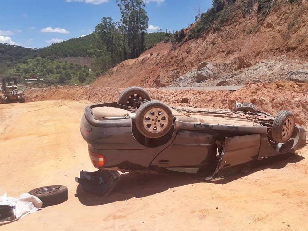 O veículo rolou lateralmente e ficou com as rodas para cima, sendo que a lataria praticamente ficou destruída nas laterais e na parte frontal. O carro foi parar onde uma empresa duplica a via federal, no quilômetro 65, próximo da Curva do Juiz, onde tombou uma carreta na tarde desta sexta-feira (01).