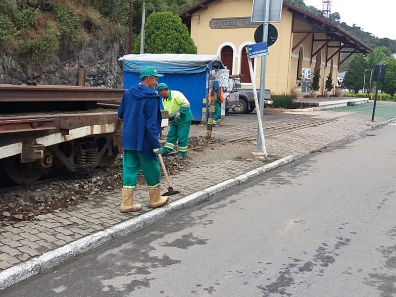 Servidores braçais de uma empresa prestadora de serviços à Prefeitura Municipal de Marechal Floriano, iniciaram na manhã desta quinta-feira (15) o serviço de capina às margens da linha férrea, ao lado da antiga estação ferroviária, atual Casa Cultural Clara Luíza Hulle Pereira.