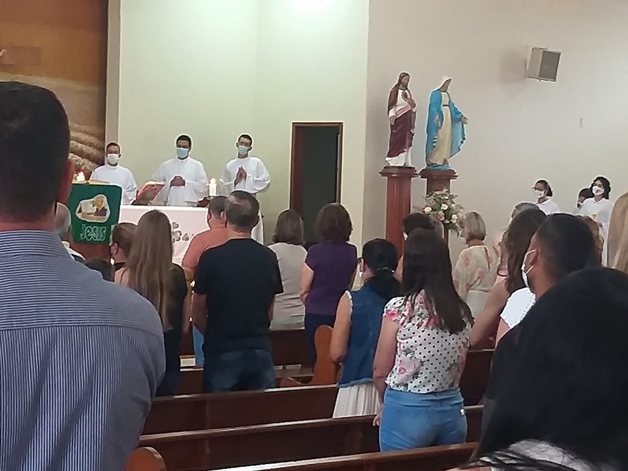 Os futuros sacerdotes da sede e interior de Marechal Floriano, Everton, David e Jéferson, que entraram na igreja ao lado do padre Marcos, vestidos a rigor, subiram ao altar juntamente com o celebrante, onde permaneceram até a finalização da celebração deste domingo.