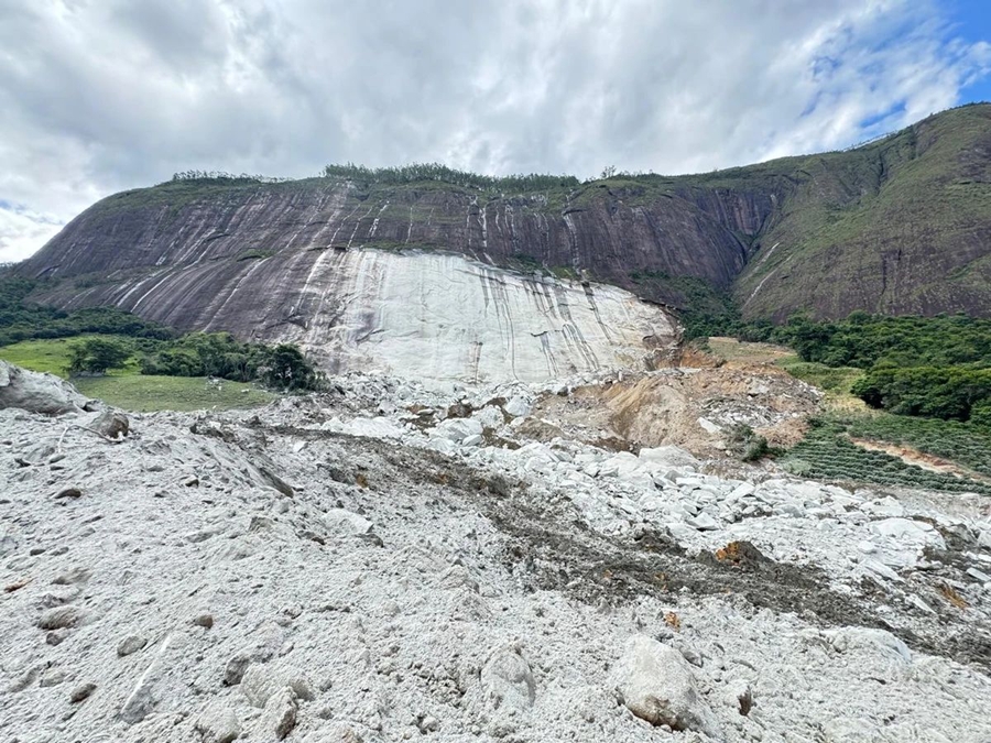 O desprendimento de uma placa de rocha de uma encosta causou danos na localidade de Córrego do Firme, zona rural de Afonso Cláudio, nesta sexta-feira (6). Fragmentos das pedras soterraram uma casa em fase final de construção e atingiram parte de uma lavoura de café, uma área de pastagem e também um trecho de mata.