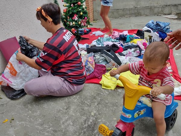 Para Marcia Velten, que é mãe de três filhas – Alice (01), Laura (03) e Sophia (18), a pandemia trouxe um panorama muito pior para as famílias de um modo geral, e por isso, neste ano, ela guardou roupas, brinquedos, calçados e roupa de cama e como um ato de solidariedade está realizando o “Natal Solidário”, novamente na calçada em frente à sua casa.