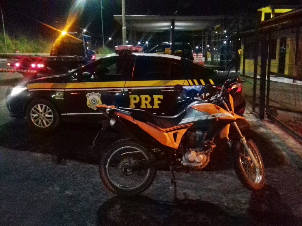 A motocicleta Honda/NXR 160 BROS, furtada na tarde de ontem (30) em Marechal Floriano, foi recuperada, por volta de 20h, pela Polícia Rodoviária Federal (PRF), no município de Viana, no km 304 da BR-101.