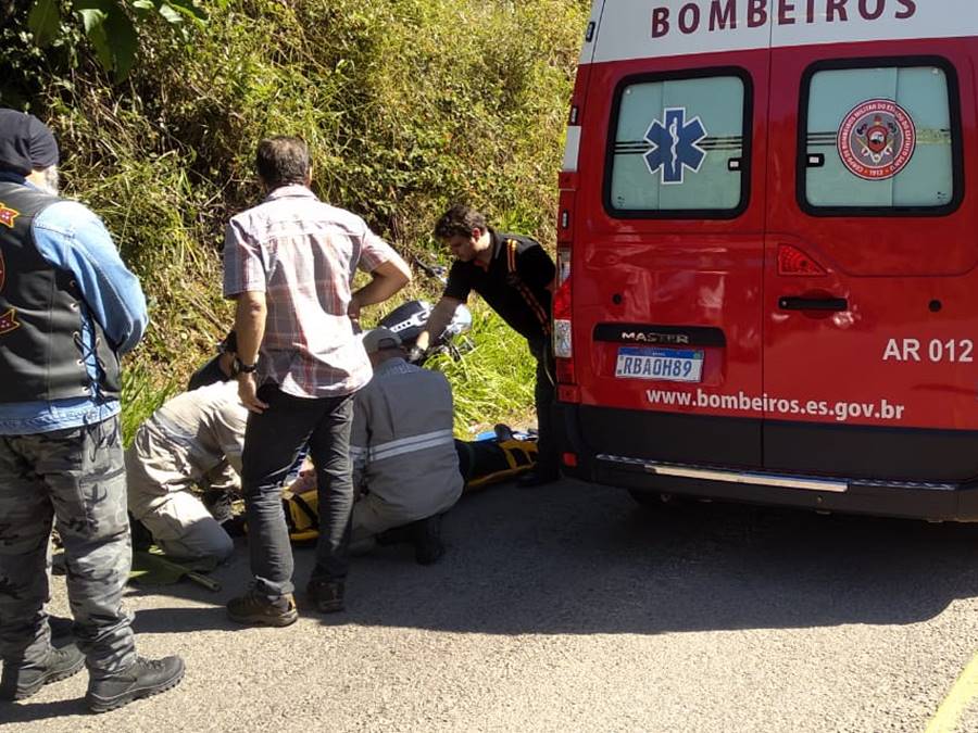 Suspeitas de fraturas, de ombro e braço esquerdos, de um homem que sofreu um tombo de uma motocicleta na Rodovia ES 146, que liga os municípios de Domingos Martins e Alfredo Chaves. Este foi o resultado da ocorrência deste sábado (23) por volta das 11h30.