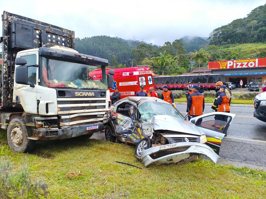 Os bombeiros chegaram ao local em menos de dois minutos após serem acionados. Eles encontraram o motorista do Logan consciente, mas gravemente ferido, com ferimentos na cabeça, fratura no braço e sangramento intenso. A equipe do SAMU, com os bombeiros, realizou o atendimento de emergência, incluindo a retirada rápida da vítima do veículo e tentativa de reanimação.