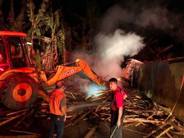 De acordo com informações do sargento Schunk, do Corpo de Bombeiros de Marechal Floriano, foi necessário a utilização de água de pelo menos quatro caminhões-pipas para conter as chamas que destruíram a cabine e boa parte da carroceria da carreta, que estava carregada com casqueiros de eucalipto. No vídeo abaixo é possível ver os bombeiros combatendo as chamas.