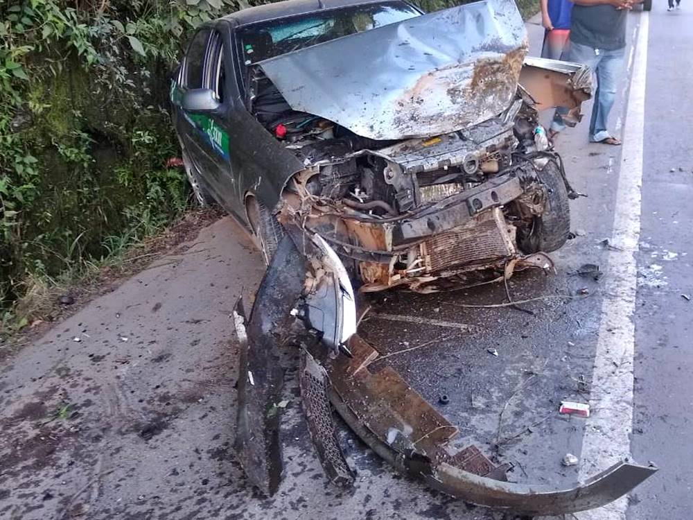 Motorista se salva após táxi rodar na pista da BR-262 e carro ficar destruído