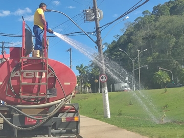 Plantadas recentemente, as centenas de mudas de manacás da serra foram regadas durante o dia de hoje (20). O objetivo da Prefeitura de Marechal Floriano é manter o crescimento das plantas com absoluta normalidade.