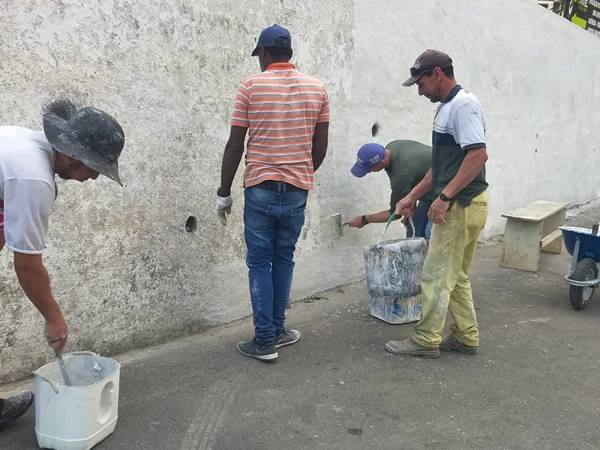 Um muro alto, existente na parte inferior do antigo Grupo Escolar de Marechal Floriano, onde na atualidade funciona a Unidade de Saúde César Vello Puppim, na sede de Marechal Floriano, está recebendo nova pintura em branco em sua totalidade.